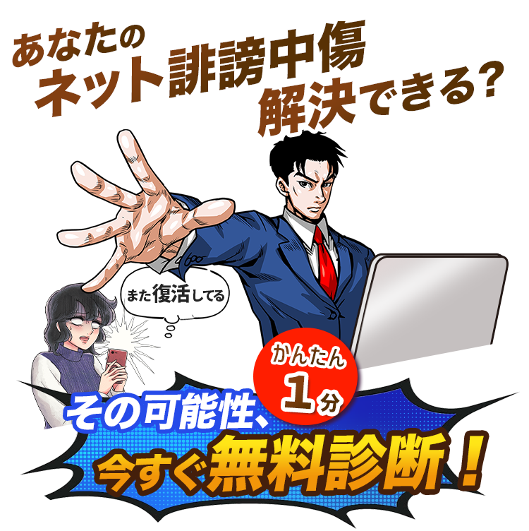 誰かが匿名で私の悪口を載せていました。事実でしたがずいぶん誇張されていてこういうのはどうにもならないと思っていましたが無料診断で可能なのを知り、今は問題が解決しました。 もしあのままだったら私生活にも支障が出ていたと思いますから助かりました。