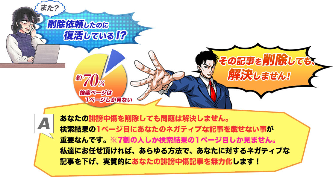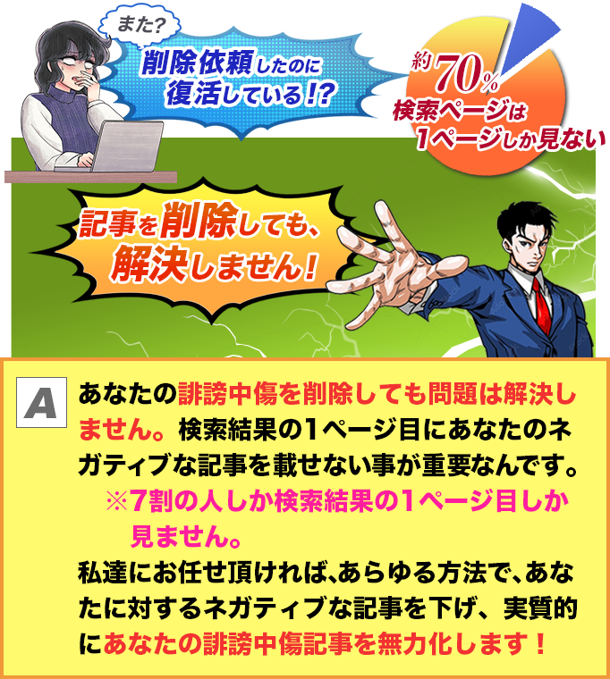 消しても消しても復活する誹謗中傷記事に悩んでいます。